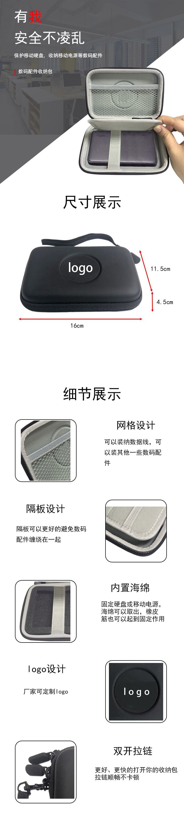 廠家直銷 防水美觀數碼收納包 品牌移動硬盤eva包